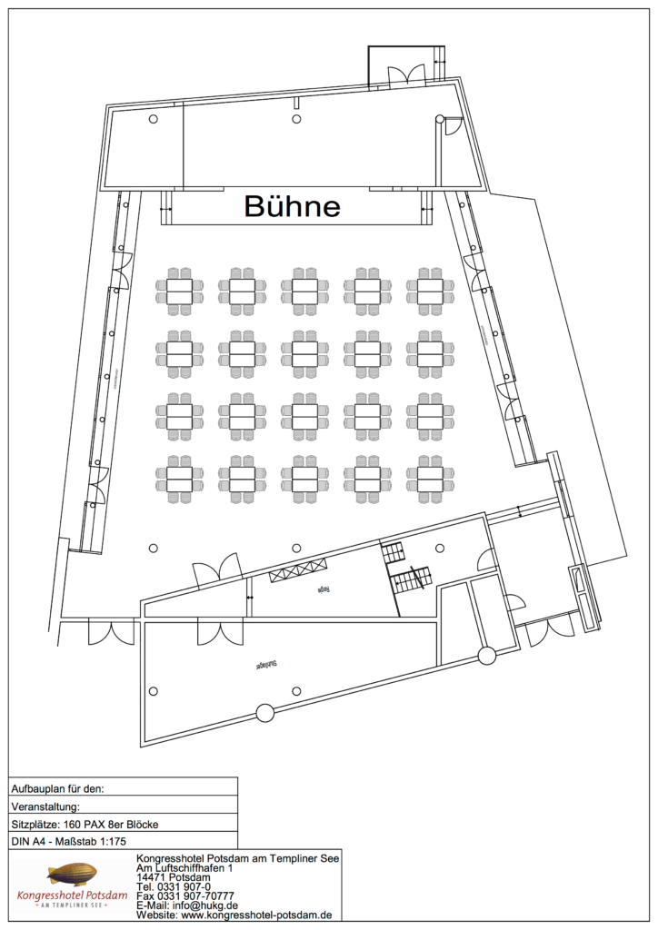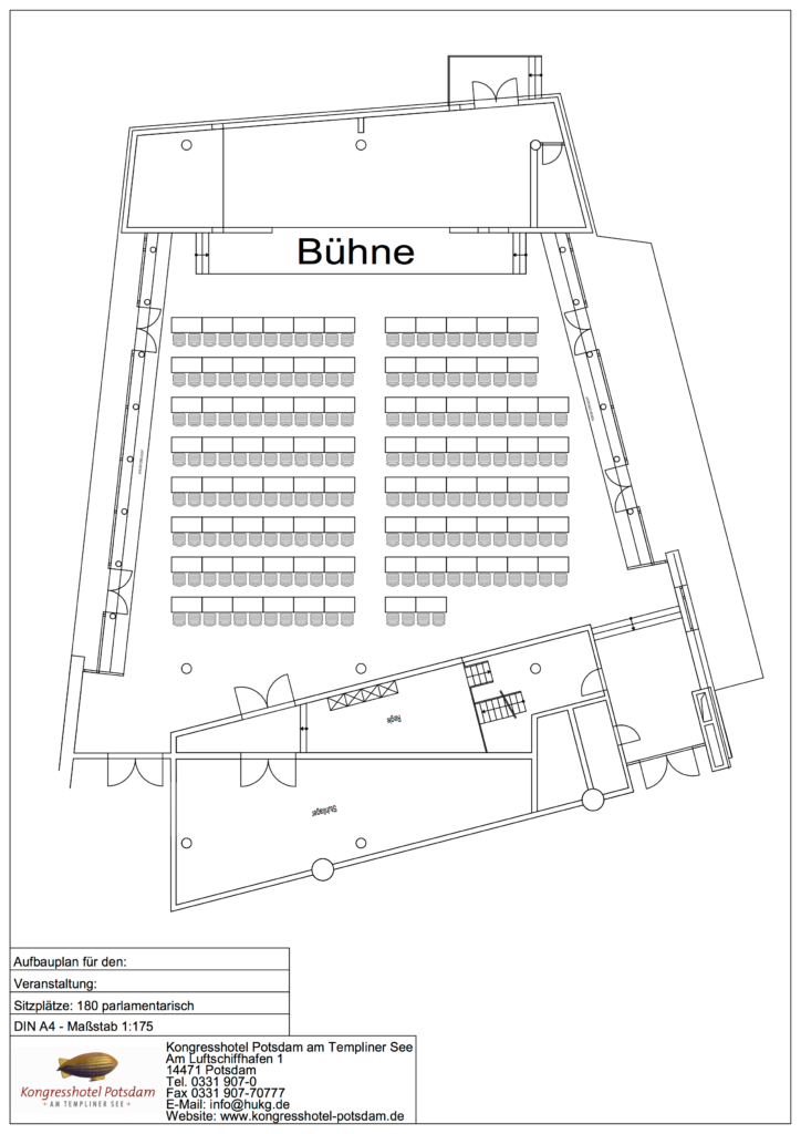 In addition to the Congress Hall, the foyer and exhibition area can also be used for your event. These areas also have real wooden parquet flooring and are suitable for ball events.