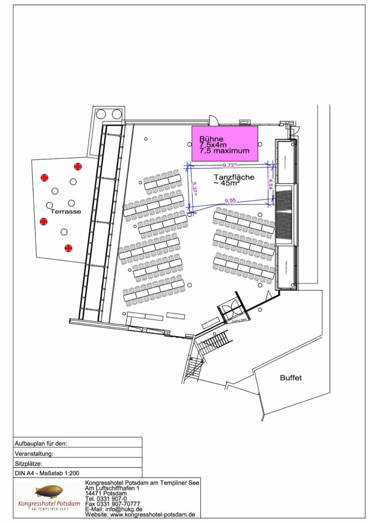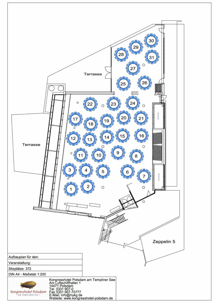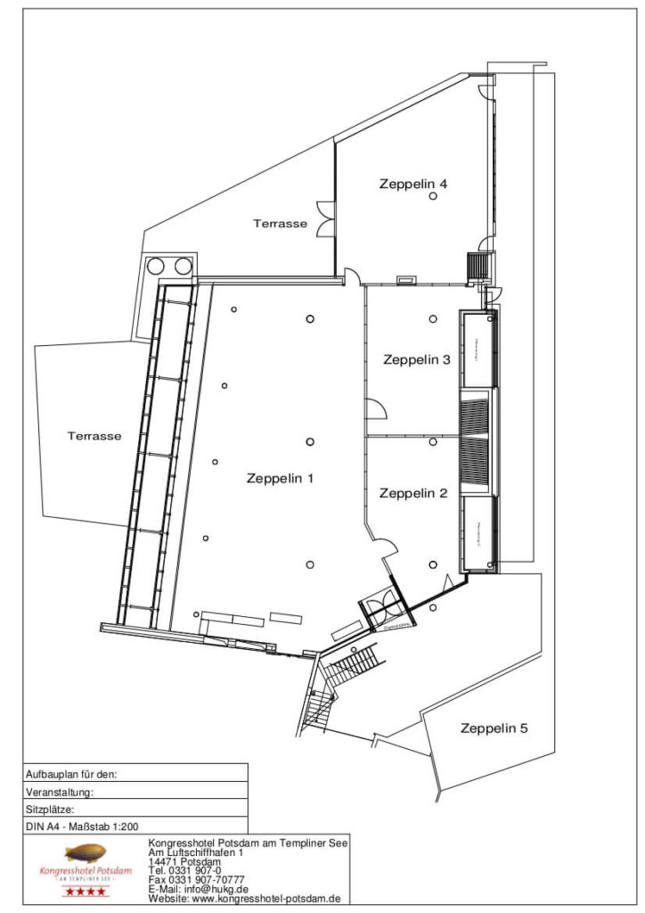 The Kongresshotel Potsdam on Lake Templin offers excellent rooms and outstanding gastronomy in keeping with the history of the location. The Zeppelin restaurant with its “floating” airship lamps is reminiscent of the time of the former airship harbor in Potsdam. This event location has a special flair and a spacious outdoor terrace – a wonderful place for events, celebrations, anniversaries and weddings.